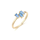 Manhattan to pierścionek w minimalistycznym stylu, który łączy chłodny blask jasno-niebieskich szafirów z elegancją żółtego złota. Trzy kamienie w szlifie baguette zostały osadzone asymetrycznie, nadając kompozycji nowoczesny charakter, inspirowany miejską dynamiką. Pierścionek ten to idealny wybór dla osób ceniących prostotę z nutą oryginalności.