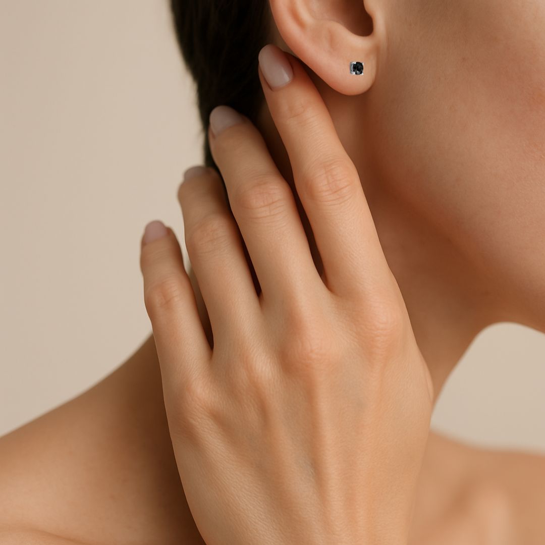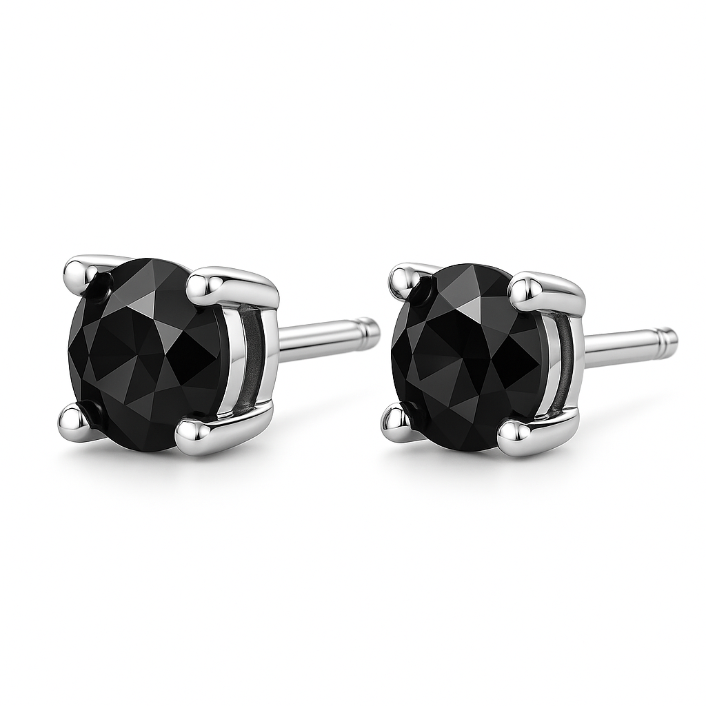 Kolczyki Midnight Noir to esencja współczesnej elegancji – para sztyftów z czarnymi diamentami o masie 0,50 ct każdy (1,00 ct łącznie), oprawionych w białe złoto z czterema subtelnymi łapkami. Głęboka czerń diamentów pięknie kontrastuje z chłodnym blaskiem metalu, tworząc efekt wyrafinowanej, minimalistycznej biżuterii, która przyciąga uwagę ale nie przytłacza. To kolczyki idealne na co dzień i na wieczór – wystarczająco dyskretne, by nosić je do ulubionych jeansów, i jednocześnie na tyle wyraziste, by dopełnić małą czarną. Sprzedawane są w komplecie z barankami.